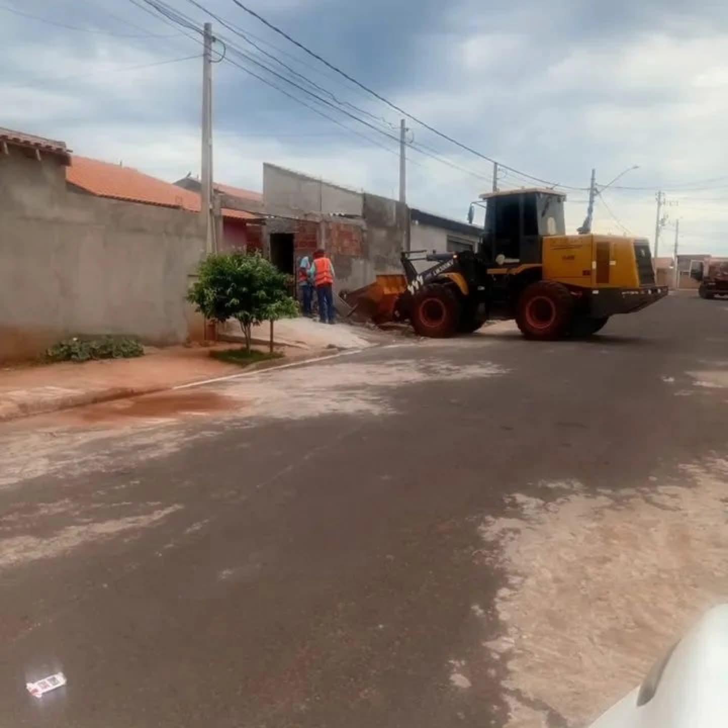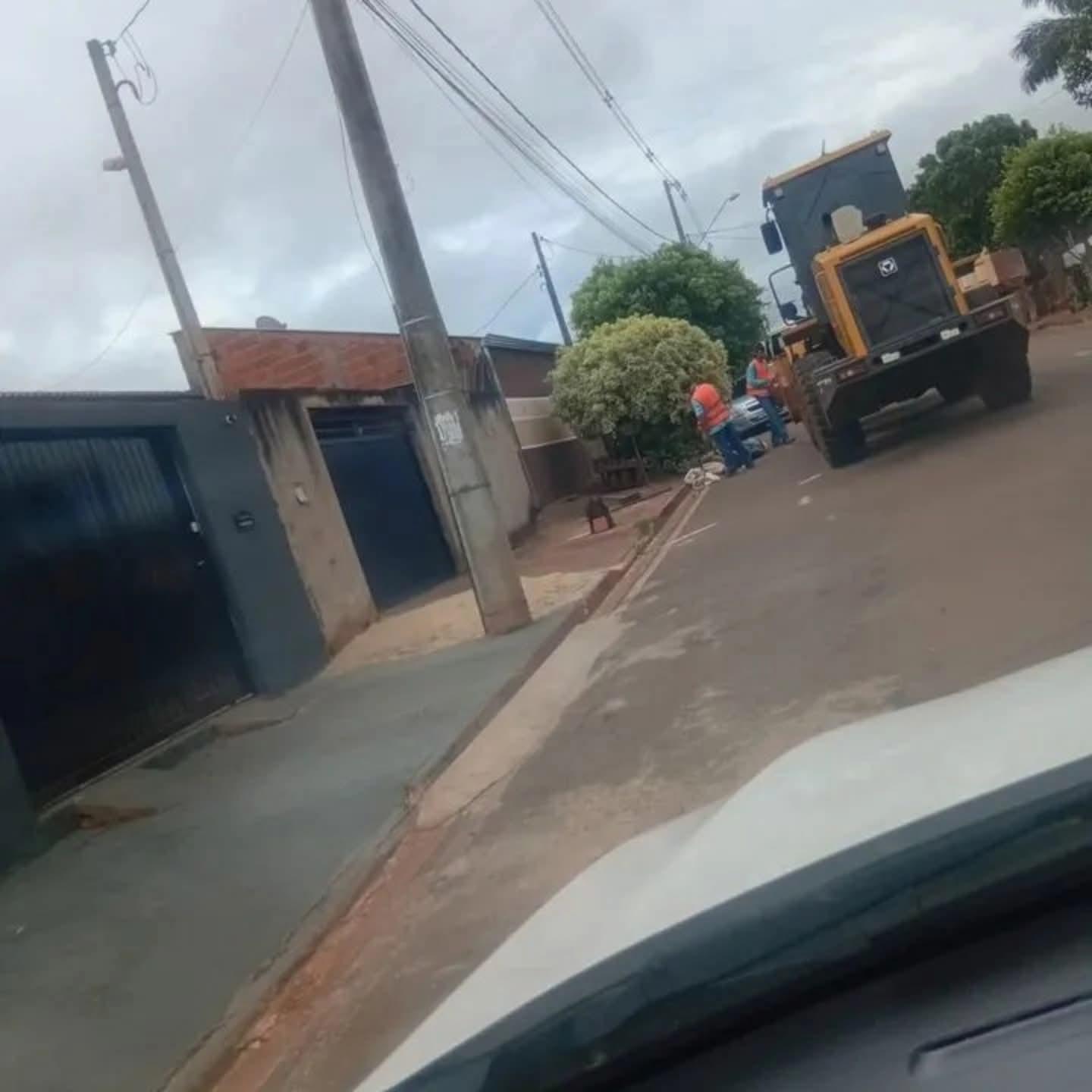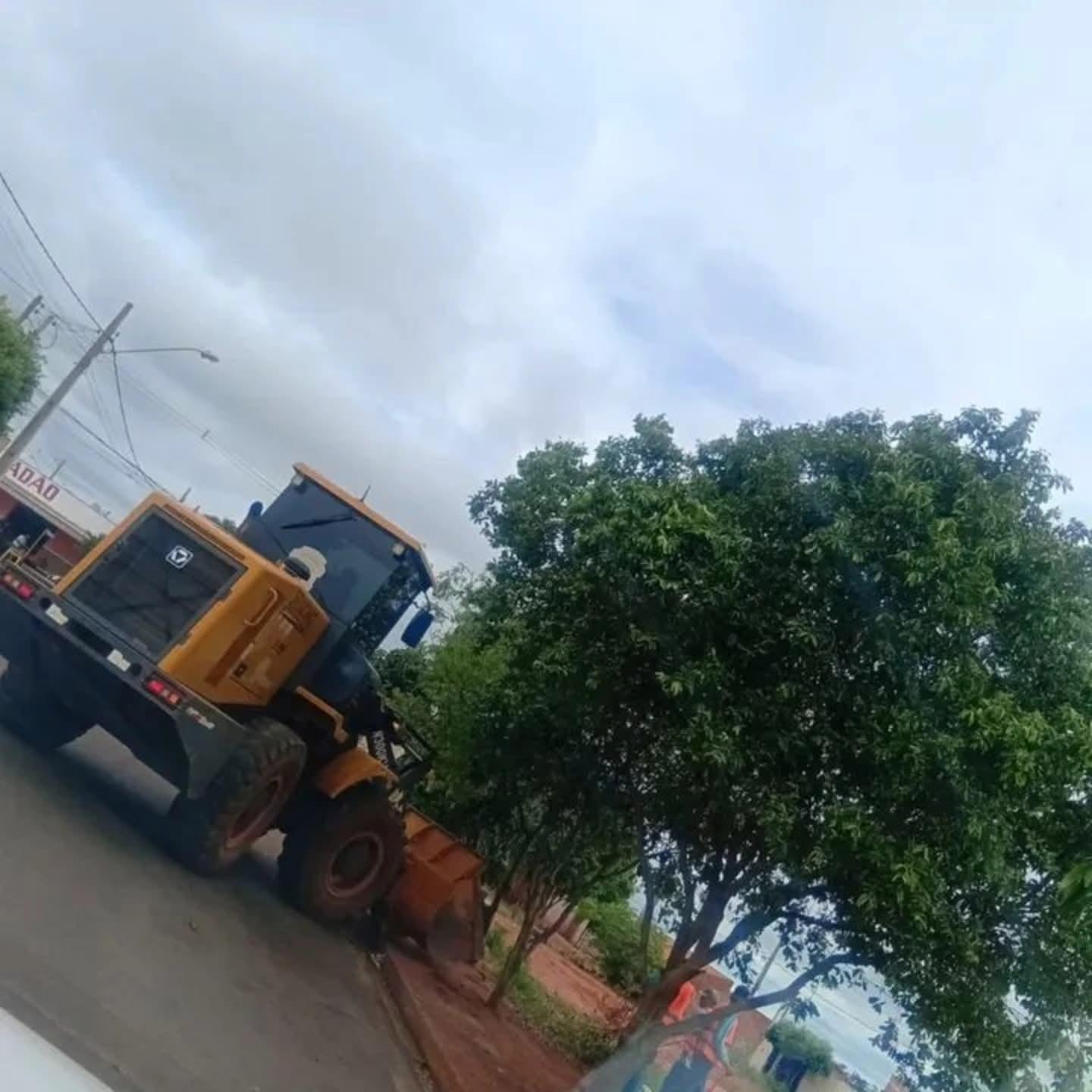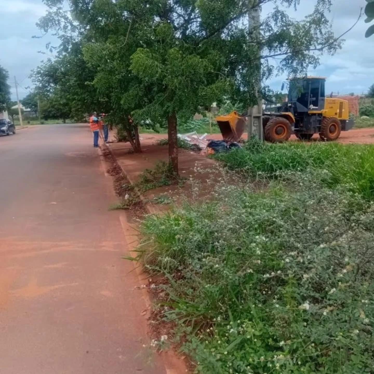Nesta terça-feira (18) a equipe de limpeza com pá carregadeira passou nos bairros Ademar Peixoto, Nelson Borges e Olga Benário.