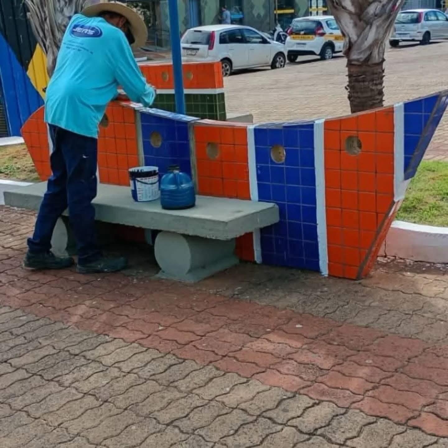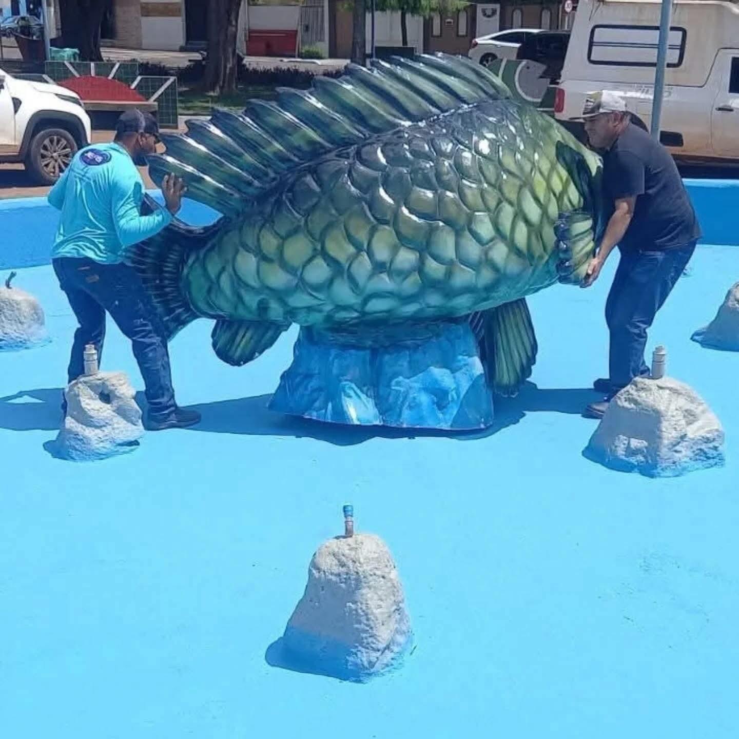 O espaço passou por melhorias que incluem pintura renovada, bancos revitalizados e a fonte com o tradicional peixe agora ainda mais colorido, valorizando um dos principais pontos da cidade.